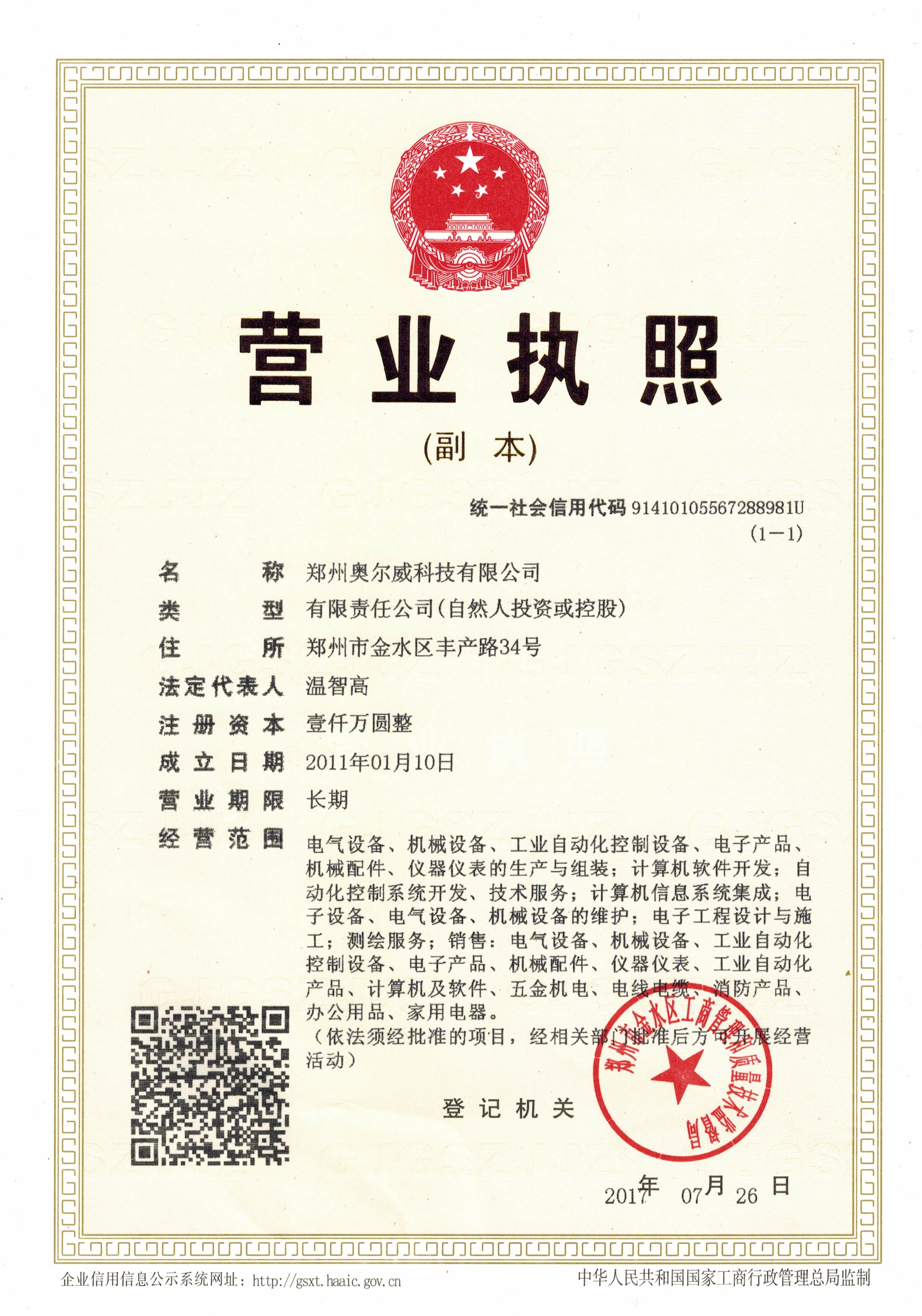 COPYRIGHT © 2013-2020 鄭州奧爾威科技有限公司 營(yíng)業(yè)執(zhí)照公示 ALL RIGHTS RESERVED